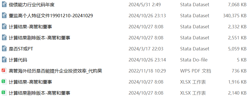 版本2:在做了上述剔除处理的基础之上,同时剔除了金融行业的样本和当年年末被ST、*ST或PT的上市公司,文件名为“计算结果剔除版本”