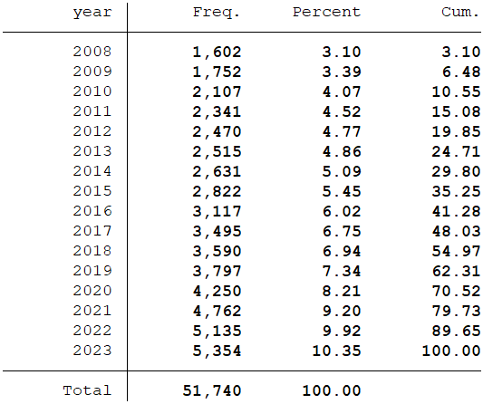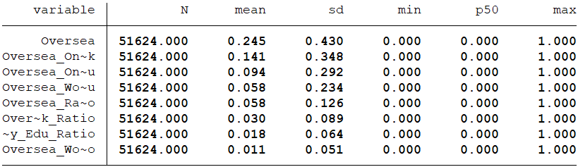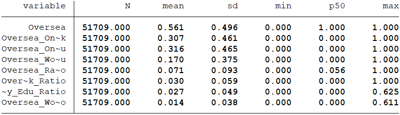 样本选择:全部A股2008-2023年数据(“海外背景”在数据库中是从2008年开始,所以数据起点为2008年)