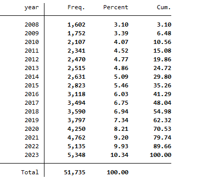 - 文件格式:Dta格式(使用Stata打开)、Xlsx格式(使用Excel打开)