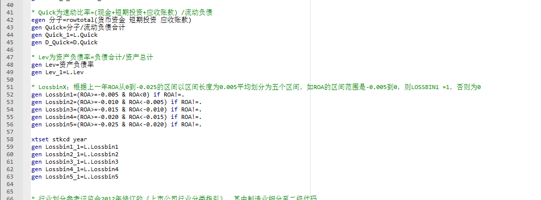 - LossbinX:根据上一年ROA从0到-0.025的区间以区间长度为0.005平均划分为五个区间,如ROA的区间范围是-0.005到0,则LOSSBIN1 =1,否则为0