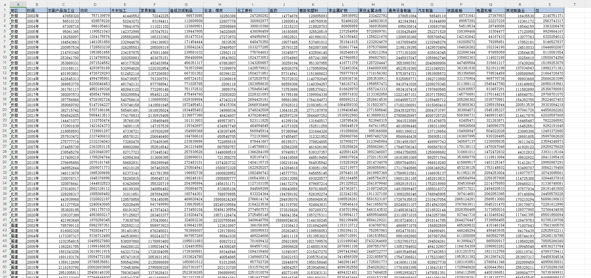 农副产品加工业、纺织、木材加工、家具制造、造纸及纸制品 石油、煤炭、化工原料、医药、橡胶和塑料、非金属矿物、黑色金属冶炼、通用设备制造、汽车制造 、铁路船舶、电器机械、其他制造业:出口份额、出口份额比重、人均GDP、出口技术复杂度等等。