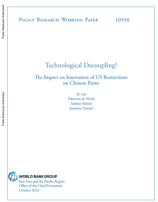 标题中的"技术脱钩"(technological decoupling)指的是美国政府为了限制中国在科技领域的发展,采取了一系列措施阻止中美两国之间的技术和经济合作。具体到题目所提到的“世界银行”(World Bank),实际上并没有直接参与这一过程,但是作为全球最重要的多边金融机构之一,它对全球经济和各国发展有着深远的影响。