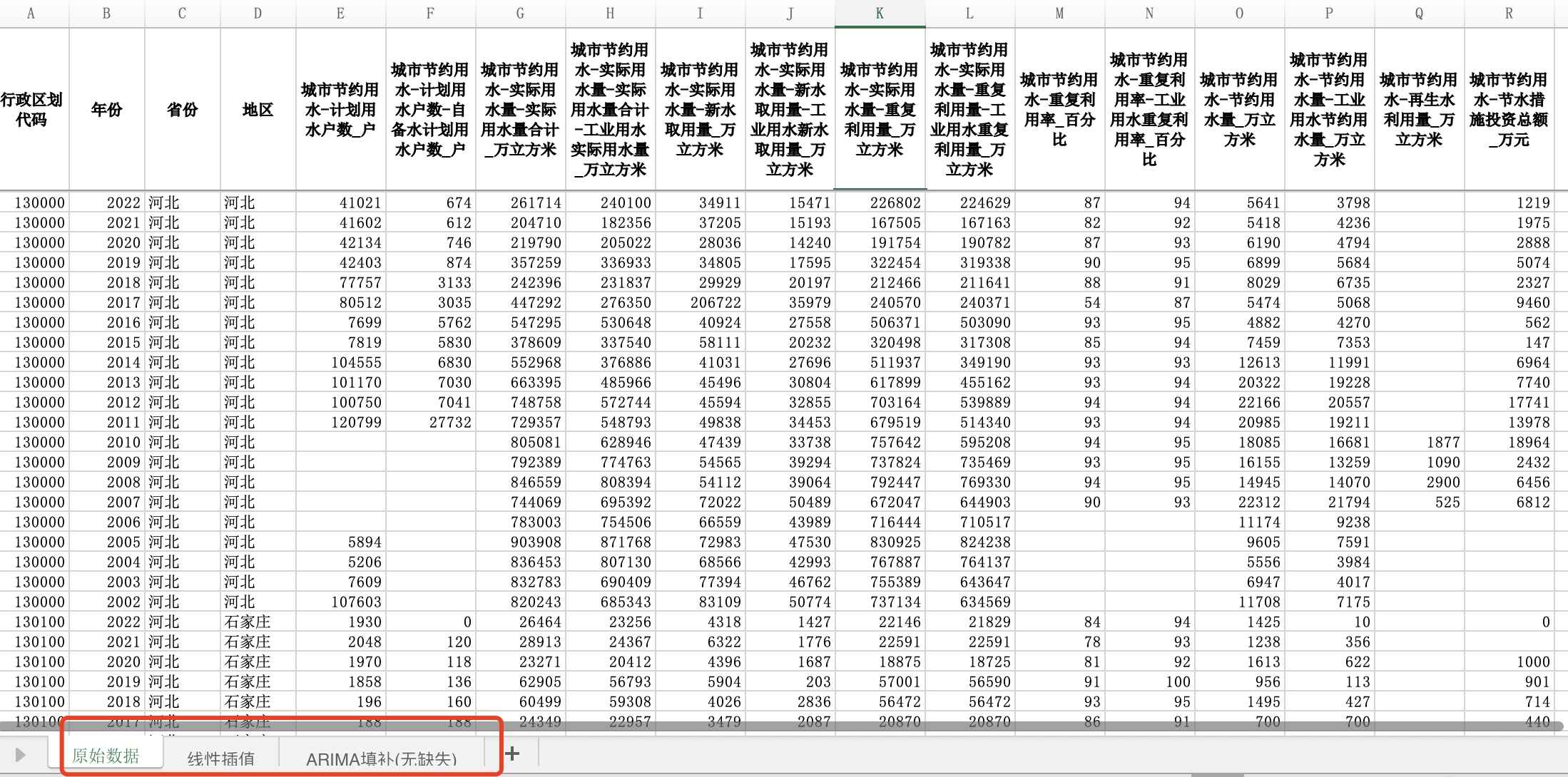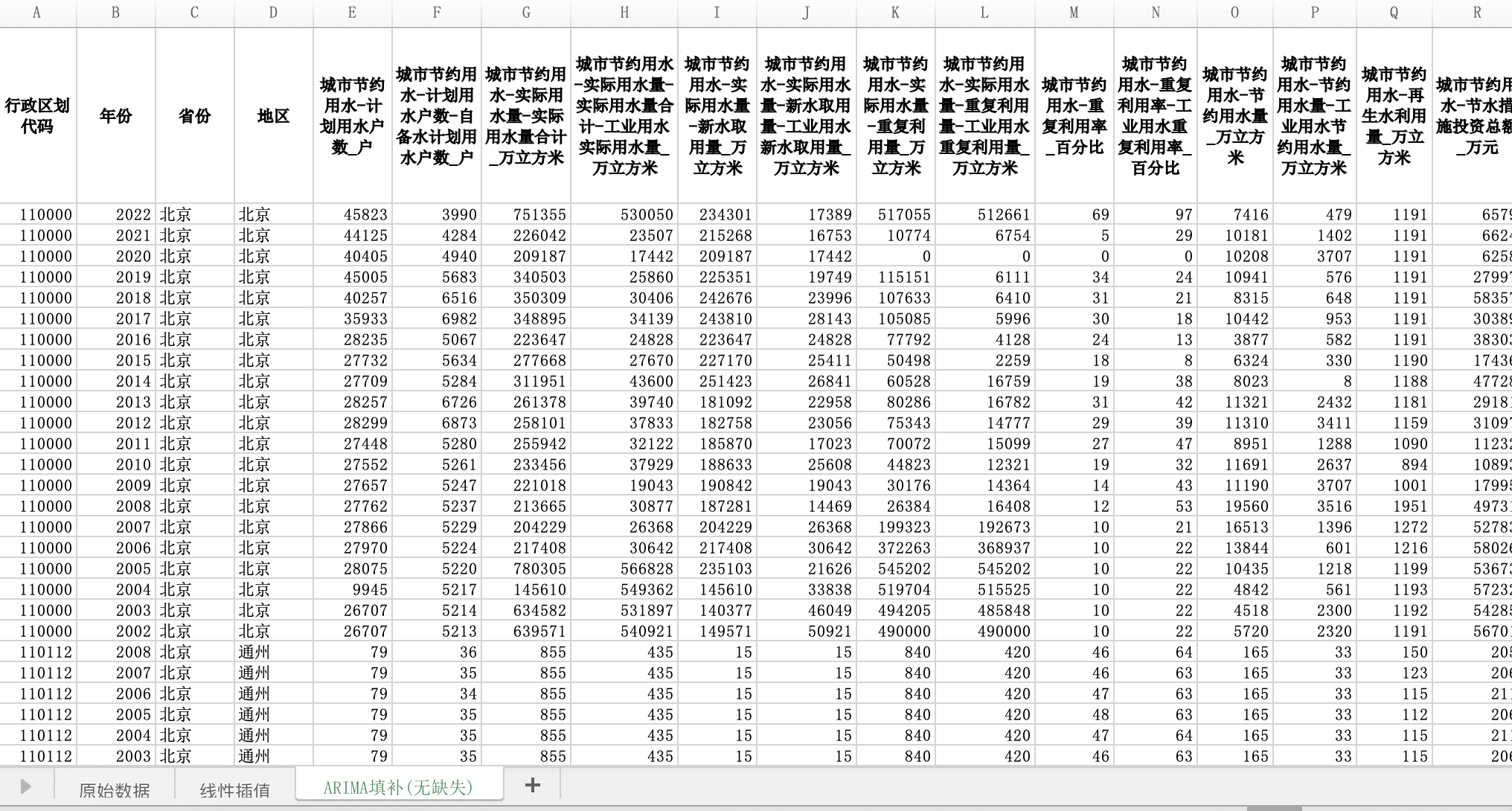 数据格式:Excel数据文件包含原始数据(由于多年度指标不同存在缺失值)、线性插值、ARIMA填补(无缺失)三个版本,提供您参考使用。其中,ARIMA填补无缺失值。