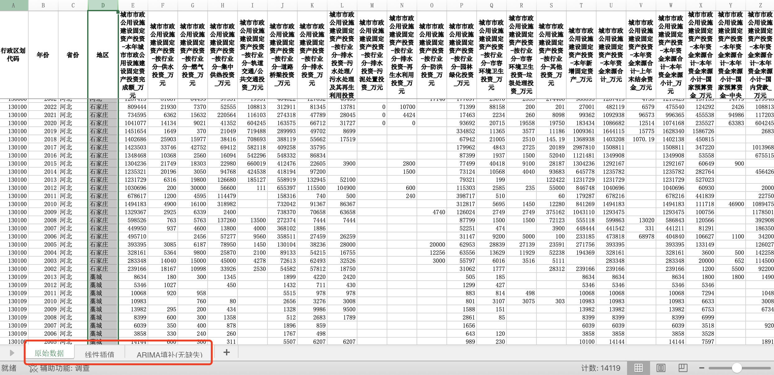 数据格式:Excel数据文件包含原始数据(由于多年度指标不同存在缺失值)、线性插值、ARIMA填补(无缺失)三个版本,提供您参考使用。其中,ARIMA填补无缺失值。