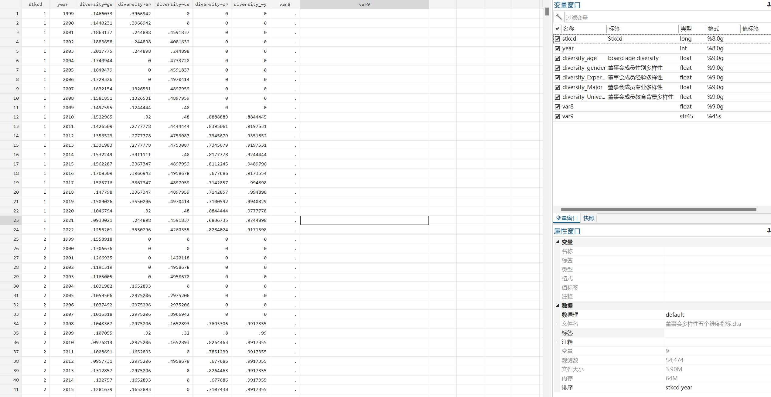 1.资料名称:2022-1990年上市公司企业董事会多样性数据