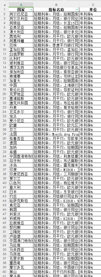 兑美元汇率-月度均值、兑美元汇率-年度均值、短期利率、长期利率、政策利率等等。