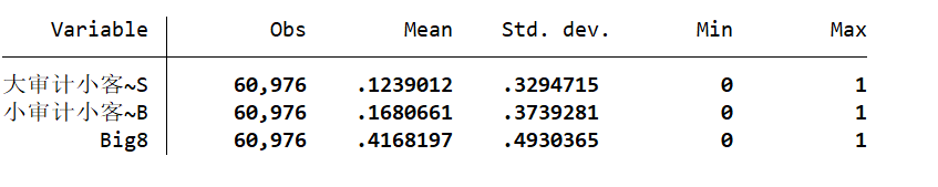 | 大所审计小客户 | BS | 八大事务所审计小规模客户,取值为1,否则为0 |