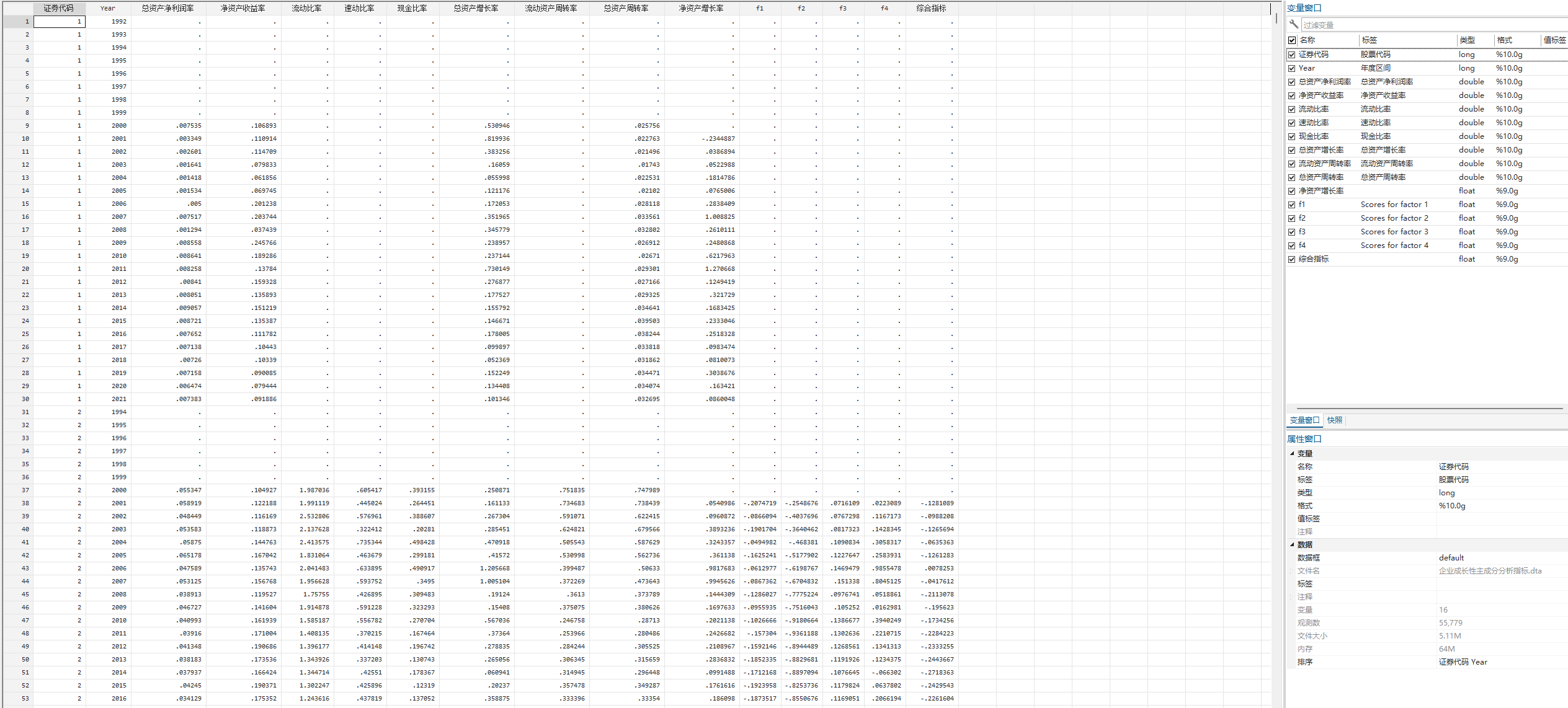 根据九个指标主成分分析:总资产净利润率、净资产收益率、流动比率、速动比率、现金比率、总资产增长率、流动资产周转率、总资产周转率、净资产增长率、成长性主成分分析综合指标