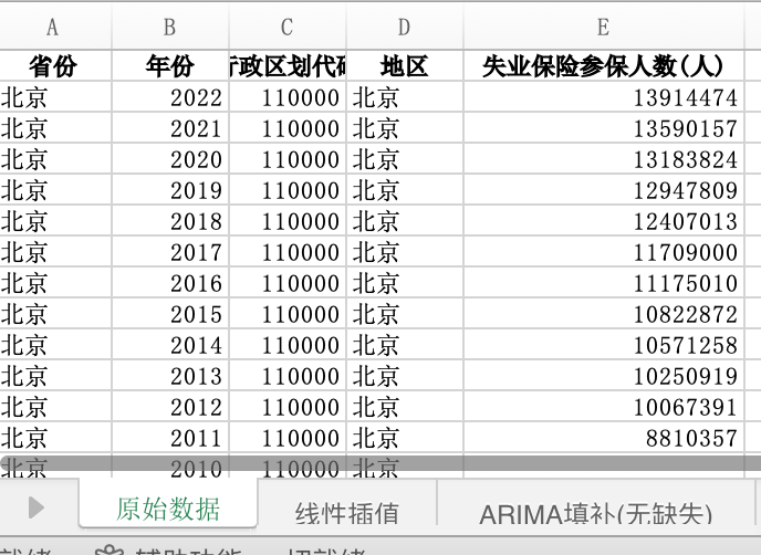 数据格式:Excel数据文件包含原始数据(由于多年度指标不同存在缺失值)、线性插值、ARIMA填补(无缺失)三个版本,提供您参考使用。其中,ARIMA填补无缺失值。