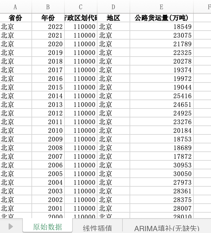 数据格式:Excel数据文件包含原始数据(由于多年度指标不同存在缺失值)、线性插值、ARIMA填补(无缺失)三个版本,提供您参考使用。其中,ARIMA填补无缺失值。