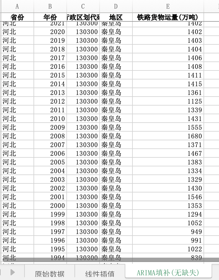 数据格式:Excel数据文件包含原始数据(由于多年度指标不同存在缺失值)、线性插值、ARIMA填补(无缺失)三个版本,提供您参考使用。其中,ARIMA填补无缺失值。