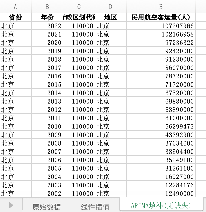 数据格式:Excel数据文件包含原始数据(由于多年度指标不同存在缺失值)、线性插值、ARIMA填补(无缺失)三个版本,提供您参考使用。其中,ARIMA填补无缺失值。