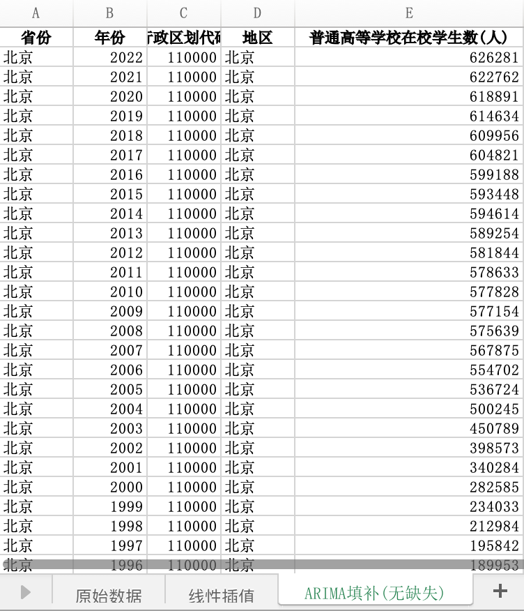 数据格式:Excel数据文件包含原始数据(由于多年度指标不同存在缺失值)、线性插值、ARIMA填补(无缺失)三个版本,提供您参考使用。其中,ARIMA填补无缺失值。