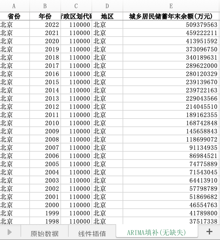 数据格式:Excel数据文件包含原始数据(由于多年度指标不同存在缺失值)、线性插值、ARIMA填补(无缺失)三个版本,提供您参考使用。其中,ARIMA填补无缺失值。