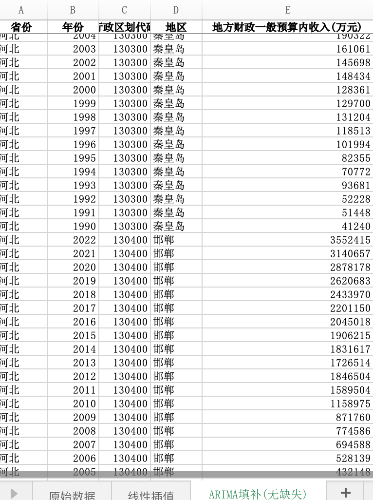 数据格式:Excel数据文件包含原始数据(由于多年度指标不同存在缺失值)、线性插值、ARIMA填补(无缺失)三个版本,提供您参考使用。其中,ARIMA填补无缺失值。