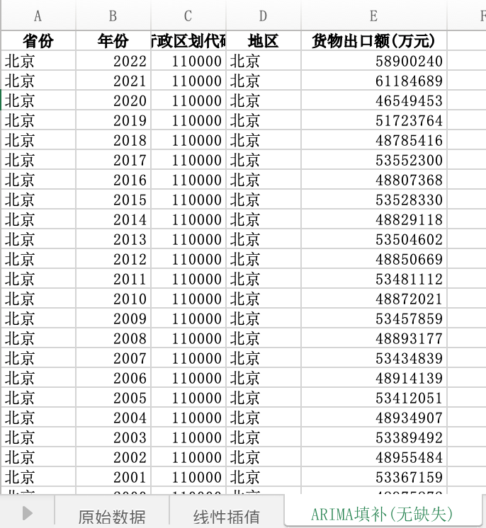 数据格式:Excel数据文件包含原始数据(由于多年度指标不同存在缺失值)、线性插值、ARIMA填补(无缺失)三个版本,提供您参考使用。其中,ARIMA填补无缺失值。