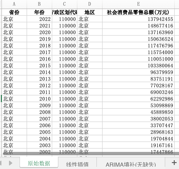数据格式:Excel数据文件包含原始数据(由于多年度指标不同存在缺失值)、线性插值、ARIMA填补(无缺失)三个版本,提供您参考使用。其中,ARIMA填补无缺失值。
