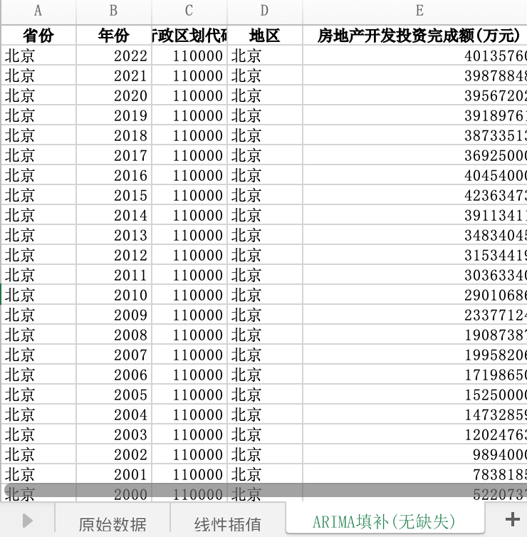 数据格式:Excel数据文件包含原始数据(由于多年度指标不同存在缺失值)、线性插值、ARIMA填补(无缺失)三个版本,提供您参考使用。其中,ARIMA填补无缺失值。