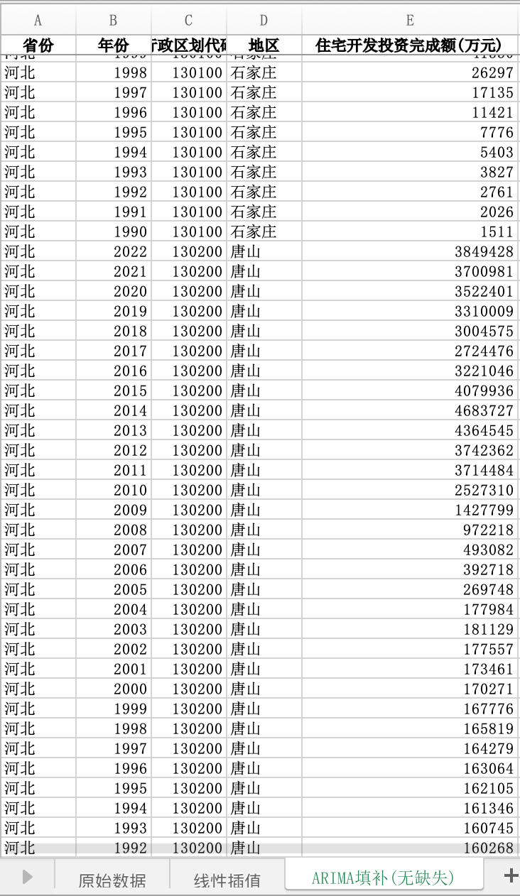 数据格式:Excel数据文件包含原始数据(由于多年度指标不同存在缺失值)、线性插值、ARIMA填补(无缺失)三个版本,提供您参考使用。其中,ARIMA填补无缺失值。