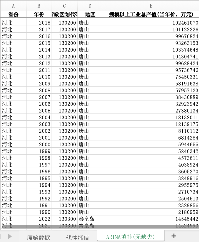 数据格式:Excel数据文件包含原始数据(由于多年度指标不同存在缺失值)、线性插值、ARIMA填补(无缺失)三个版本,提供您参考使用。其中,ARIMA填补无缺失值。