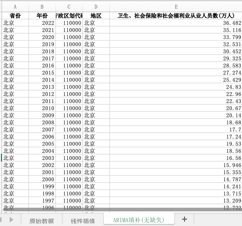 数据格式:Excel数据文件包含原始数据(由于多年度指标不同存在缺失值)、线性插值、ARIMA填补(无缺失)三个版本,提供您参考使用。其中,ARIMA填补无缺失值。