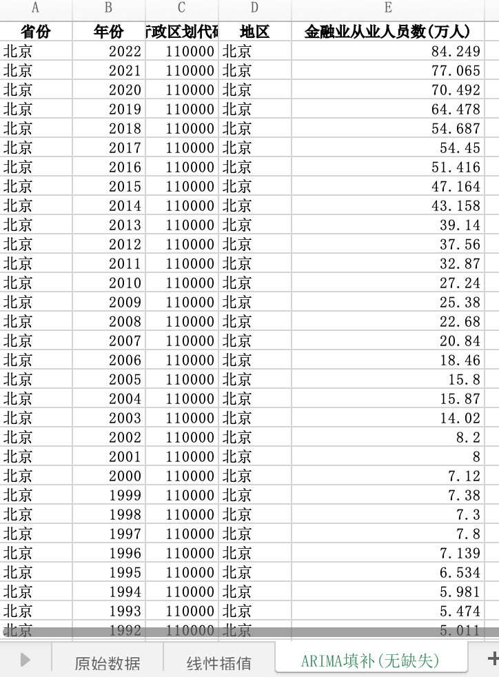 数据格式:Excel数据文件包含原始数据(由于多年度指标不同存在缺失值)、线性插值、ARIMA填补(无缺失)三个版本,提供您参考使用。其中,ARIMA填补无缺失值。