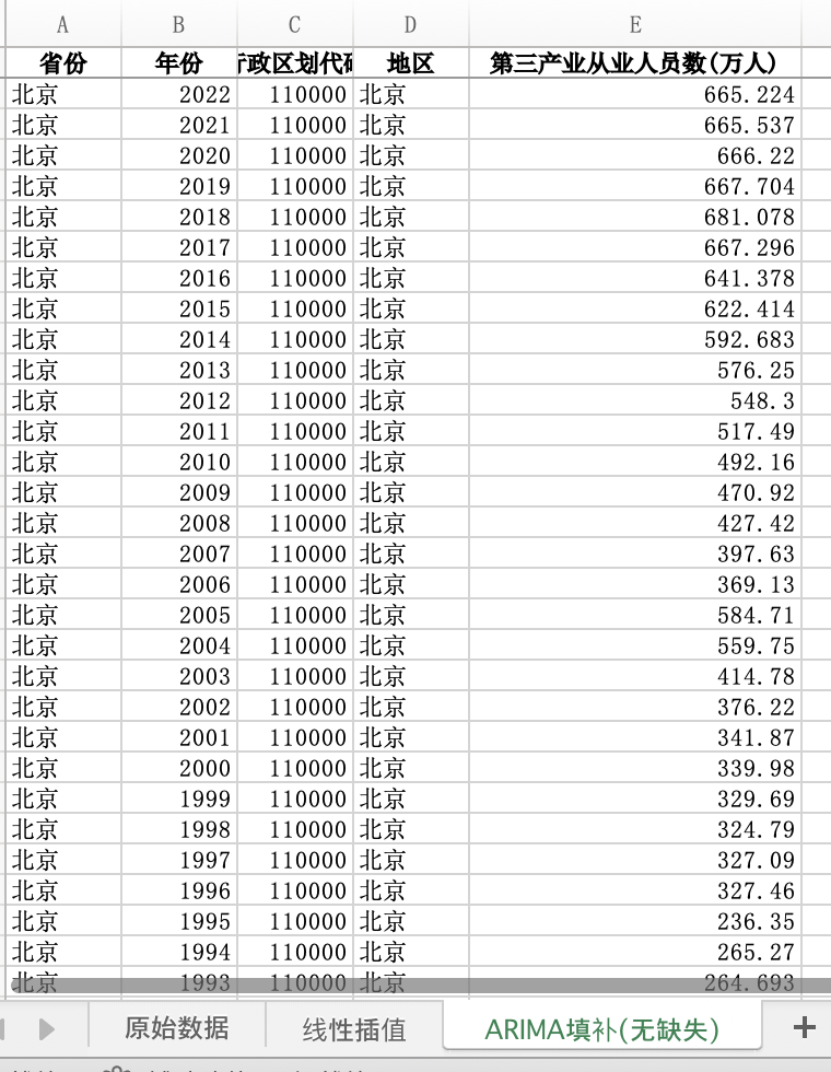 数据格式:Excel数据文件包含原始数据(由于多年度指标不同存在缺失值)、线性插值、ARIMA填补(无缺失)三个版本,提供您参考使用。其中,ARIMA填补无缺失值。