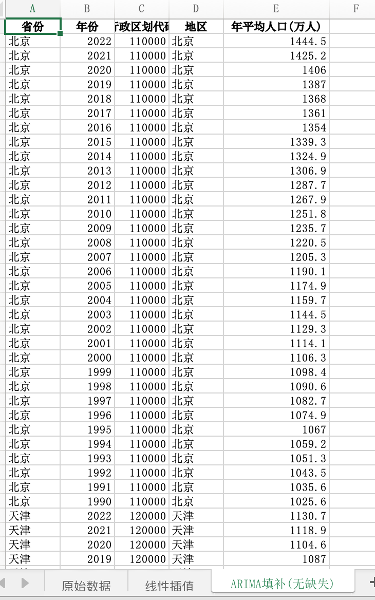 数据格式:Excel数据文件包含原始数据(由于多年度指标不同存在缺失值)、线性插值、ARIMA填补(无缺失)三个版本,提供您参考使用。其中,ARIMA填补无缺失值。