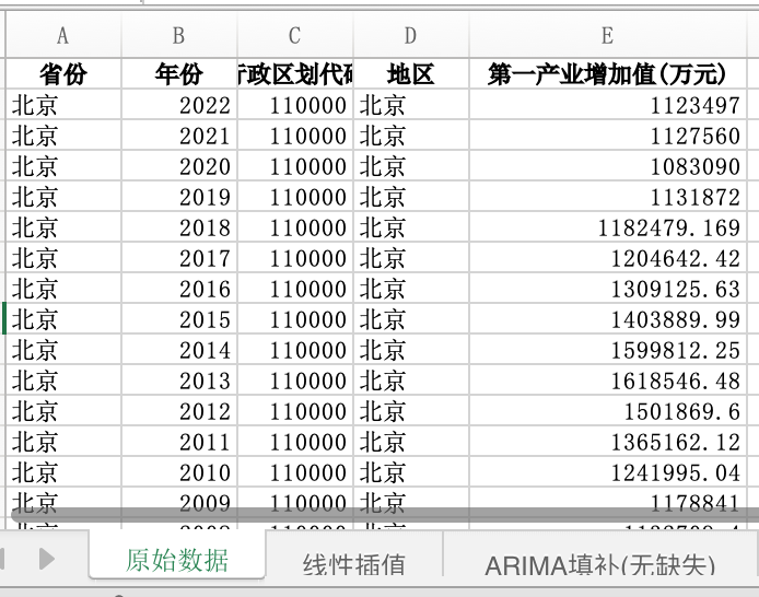 数据格式:Excel数据文件包含原始数据(由于多年度指标不同存在缺失值)、线性插值、ARIMA填补(无缺失)三个版本,提供您参考使用。其中,ARIMA填补无缺失值。