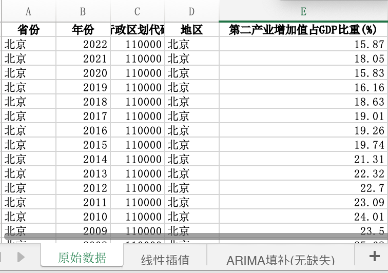 数据格式:Excel数据文件包含原始数据(由于多年度指标不同存在缺失值)、线性插值、ARIMA填补(无缺失)三个版本,提供您参考使用。其中,ARIMA填补无缺失值。