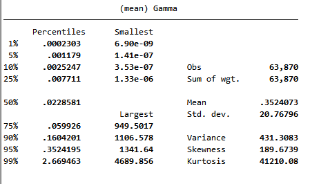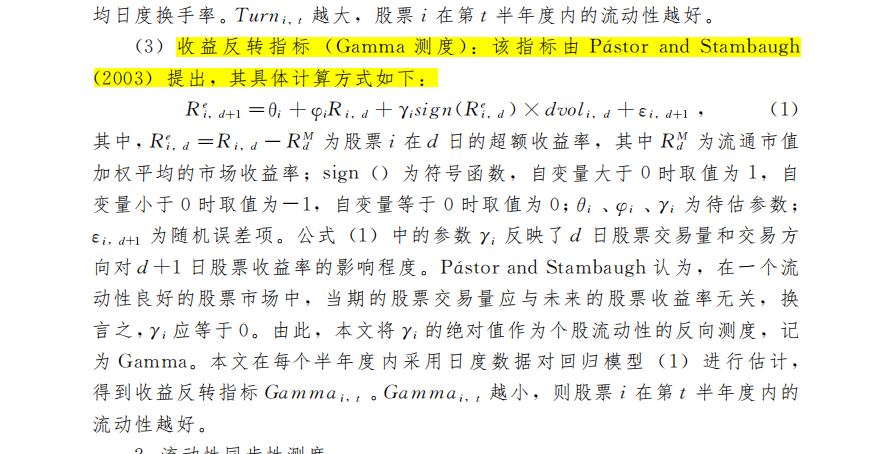 在每个年度内采用日度数据对回归模型(1)进行估计,得到收益反转指标Gamma,Gamma越小,则股票在年度内的流动性越好。