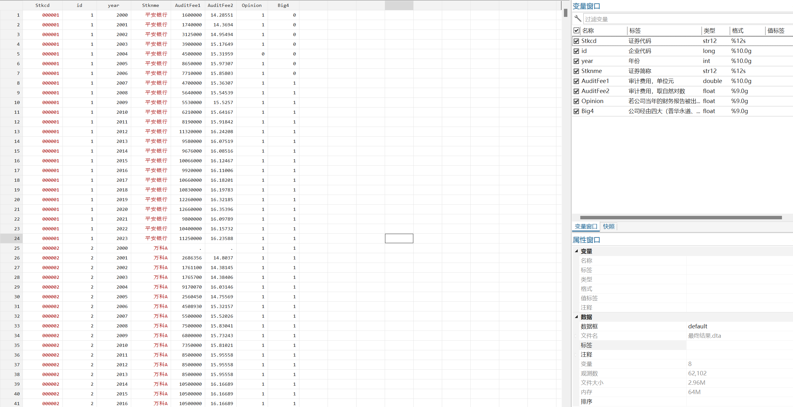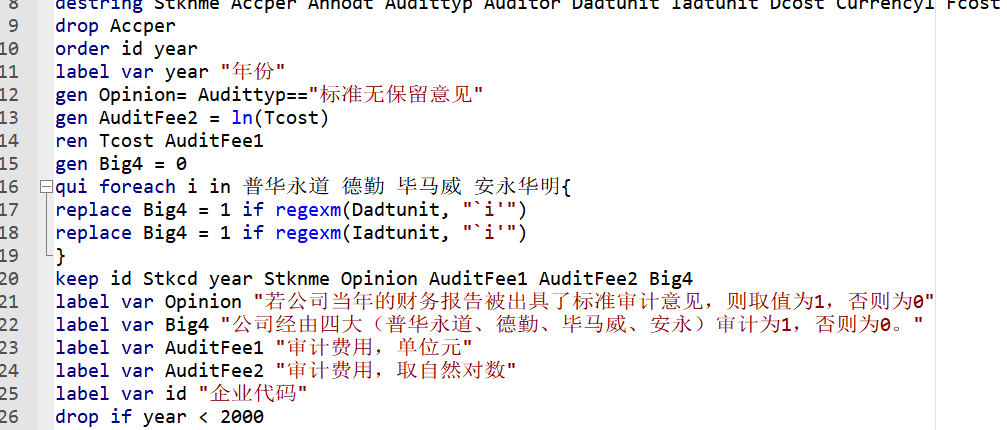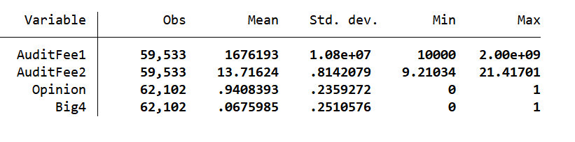- 审计费用对数(lnFee):取自然对数 (其他货币单位统一换算为人民币)