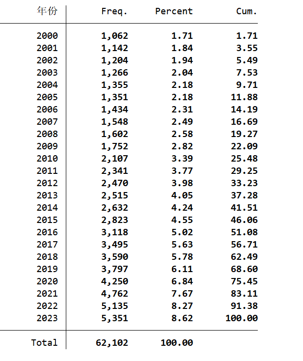 - 文件格式:Dta格式(使用Stata打开)、Xlsx格式(使用Excel打开)