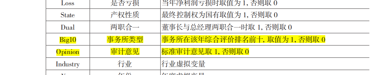 是否4大(Big4):如果审计机构为以下4大会计事务所取1,否则取0