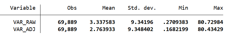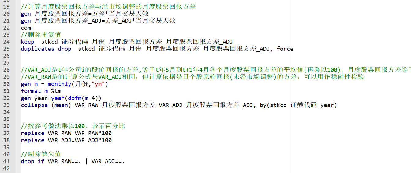 - VAR-RAW是的计算公式与VAR-ADJ相同,但计算依据是日个股原始回报(未经市场调整)的方差,可以用作稳健性检验
