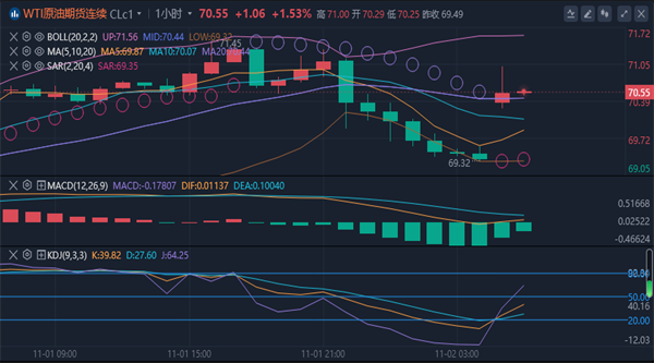 【原油消息面分析】:美国原油产量创新高,加上非农等经济数据走弱引发需求担忧,上周五国际原油高位回落,WTI原油最终收跌1.65%,报69.13美元/桶;布伦特原油收跌1.57%,报72.86美元/桶。产油国组织OPEC+周日表示,已同意将原定于12月生效的石油增产计划推迟一个月,原因是需求疲软,尤其是来自亚洲大国的需求,再加上该组织以外地区的供应增加,给石油市场带来了下行压力。