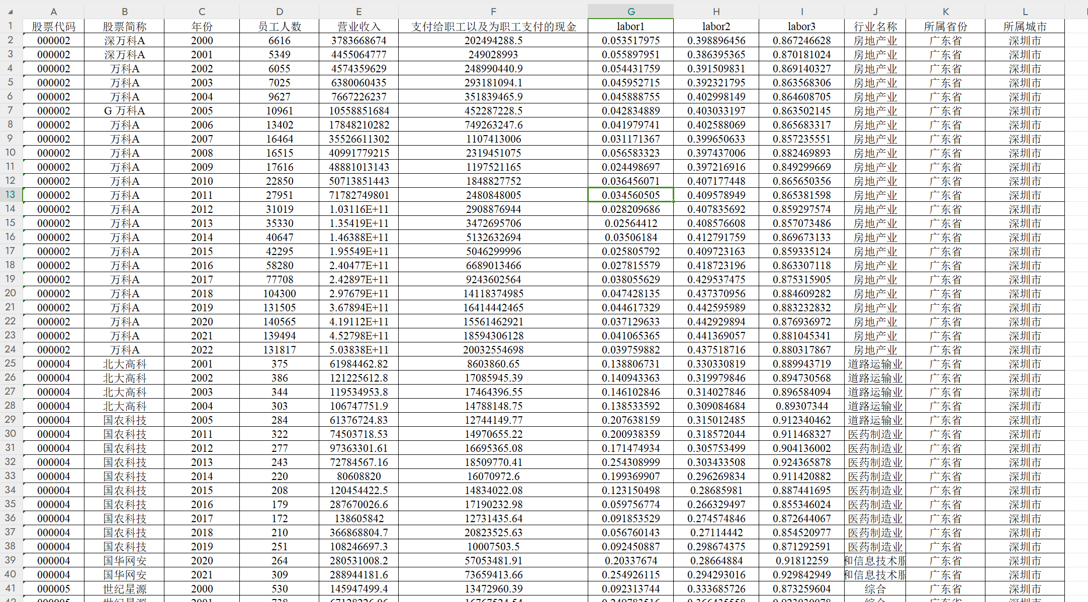 【数据】上市公司劳动密集度测算数据2000-2022!