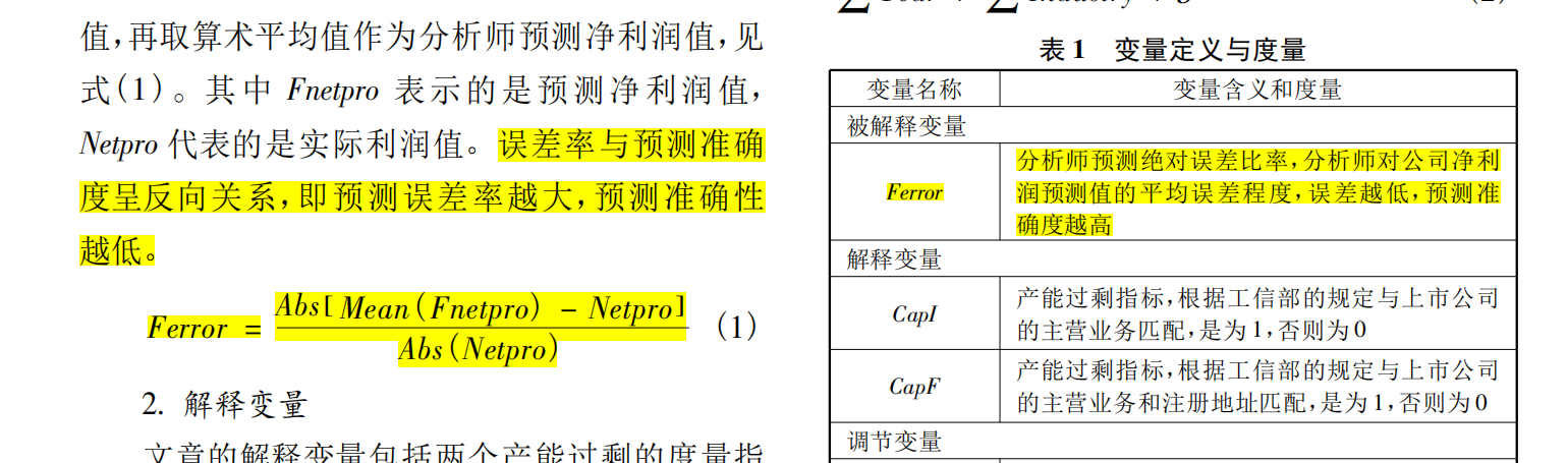 [7]颜恩点,李上智,孙安其.产能过剩、信息成本与分析师盈余预测——来自A股上市公司的经验证据[J].中国软科学,2019(10):145-157.(FERROR、FDISP2)