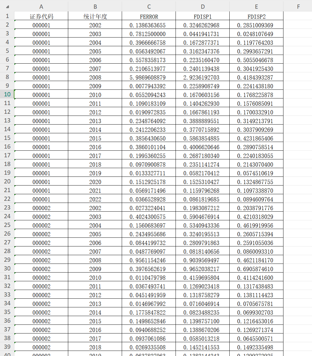 [4]林钟高,朱杨阳.信息披露监管模式变更影响分析师预测行为吗?——基于分析师预测准确度与分歧度的视角[J].会计与经济研究,2021,35(05):62-78.(FERROR、FDISP1)