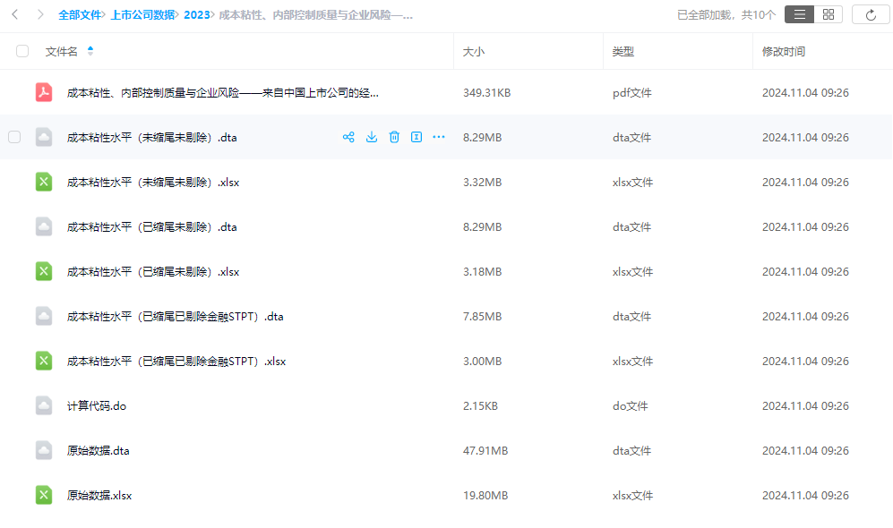 上市公司Weiss模型成本粘性内部控制质量与企业风险2002-2023营业收入利润成本变动额