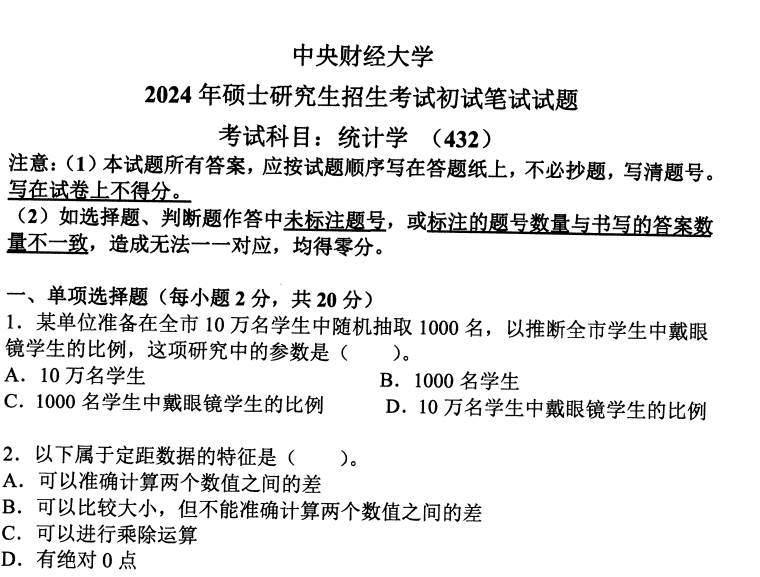 中财中央财经大学432统计学2024(无答案).png