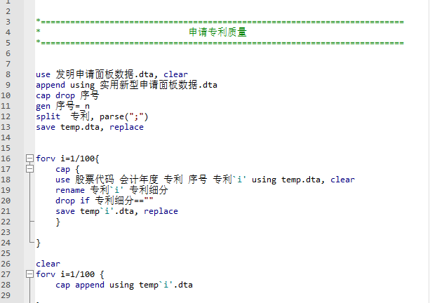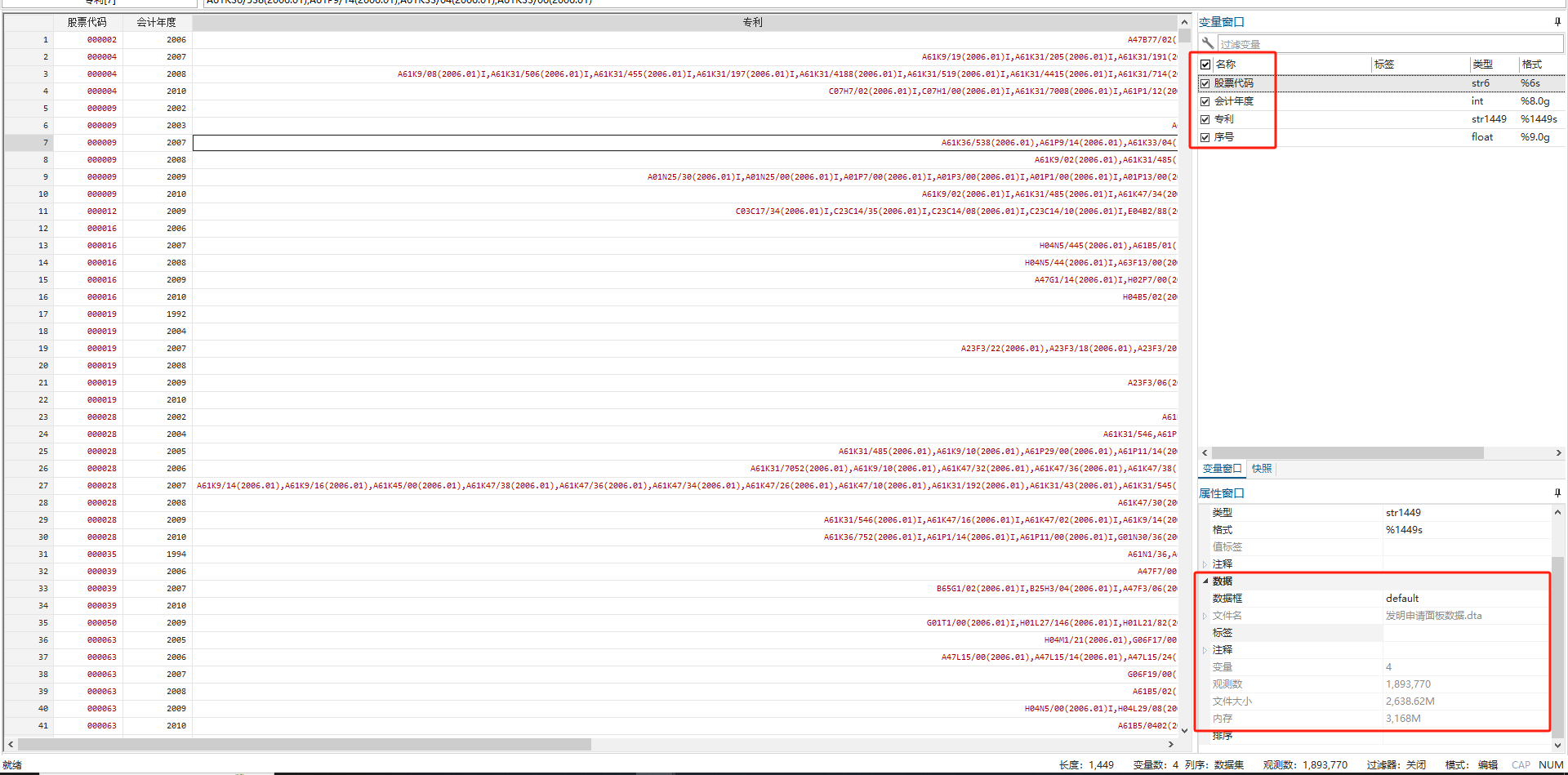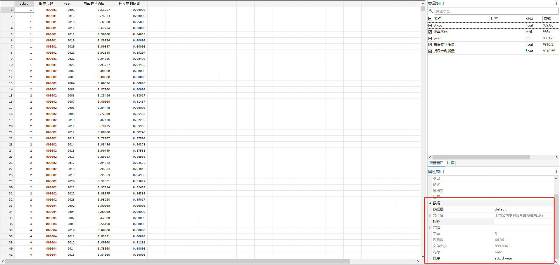 - 数据分析:使用Stata对清洗后的数据进行处理和分析。计算每个企业在不同大组下的专利数量,并基于这些数据计算赫芬达尔指数,进而得到知识宽度值。