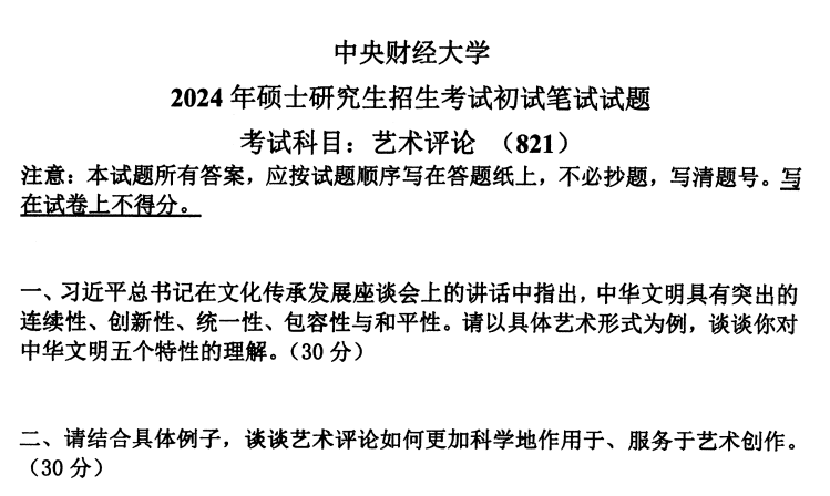 中财中央财经大学821艺术评论2024(无答案)