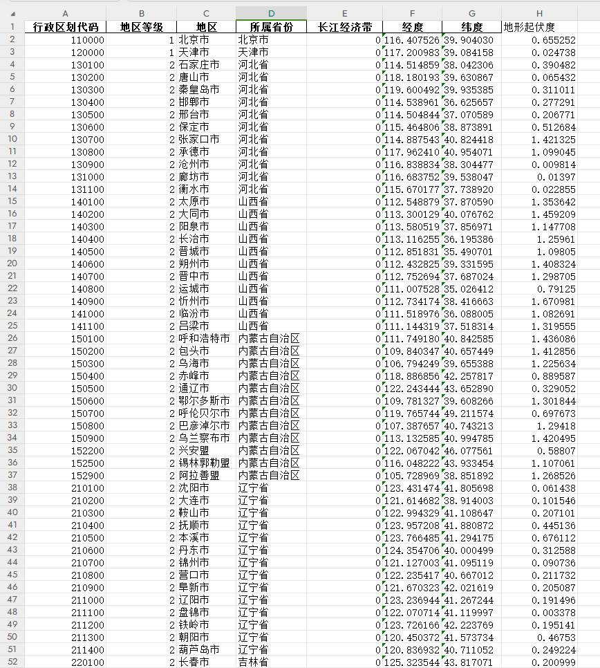 364城市地形起伏度指数,可作为工作变量