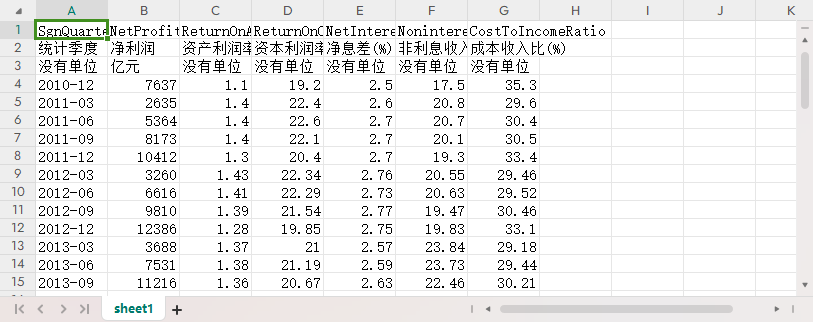 统计季度 净利润 资产利润率(%) 资本利润率(%) 净息差(%) 非利息收入占比(%) 成本收入比(%)