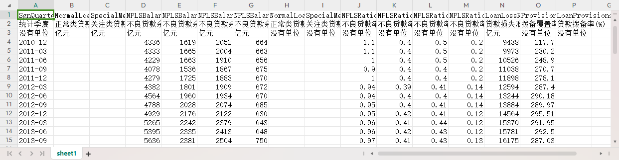 统计季度 正常类贷款 关注类贷款 不良贷款余额 不良贷款余额:次级贷款 不良贷款余额:可疑贷款 不良贷款余额:损失贷款 正常类贷款占比(%) 关注类贷款占比(%) 不良贷款率(%) 不良贷款率:次级贷款(%) 不良贷款率:可疑贷款(%) 不良贷款率:损失贷款(%) 贷款损失准备 拨备覆盖率(%) 贷款拨备率(%)