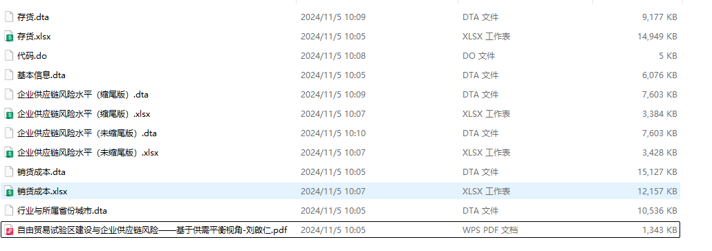 文件格式:Dta格式(使用Stata打开)、Xlsx格式(使用Excel打开