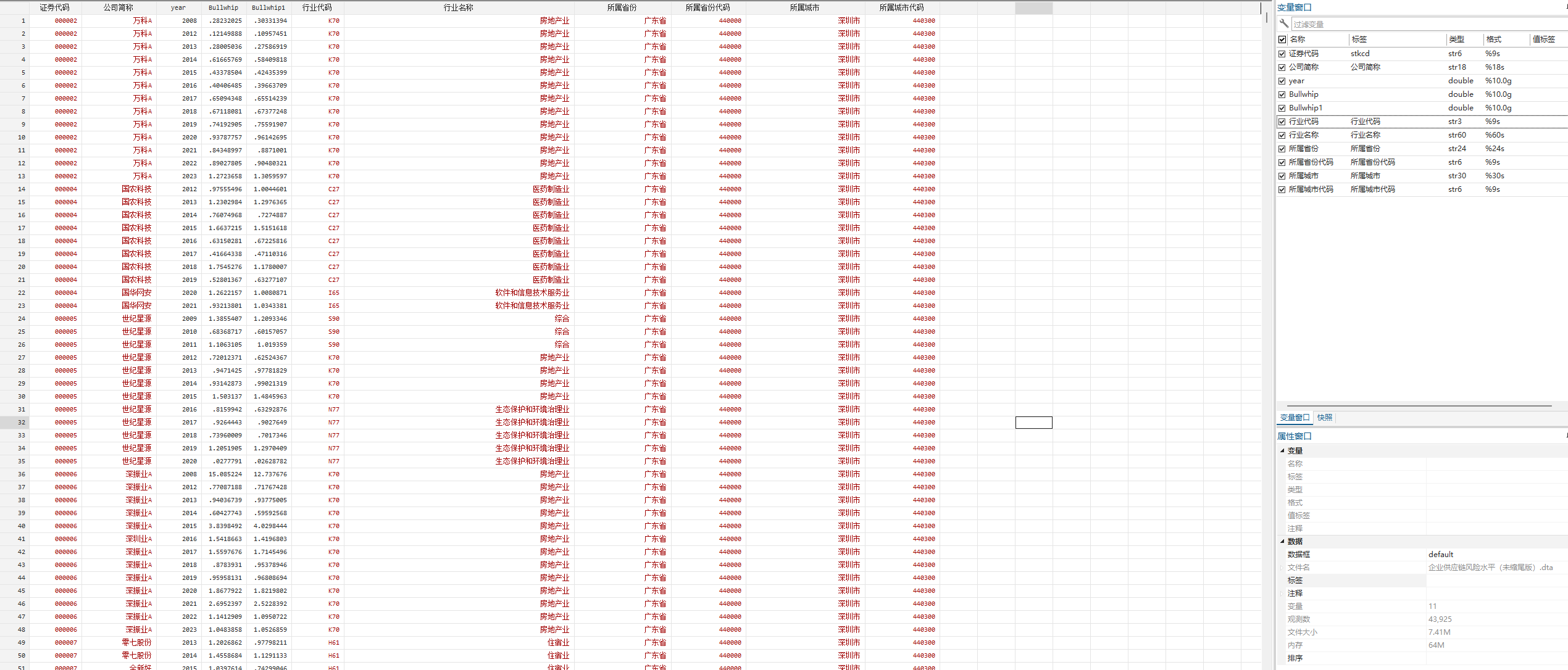 注:提供了剔除所需数据和剔除代码,若无需做该项剔除处理,自行删除相关代码重新运行即可行业参照证监会2012年行业分类标准,制造业用二级行业分类,其他用一级分类来计算并对连续型变量进行了1%和99%分位数的缩尾处理