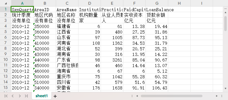 统计季度 地区代码 地区名称 机构数量 从业人员数 实收资本 贷款余额
