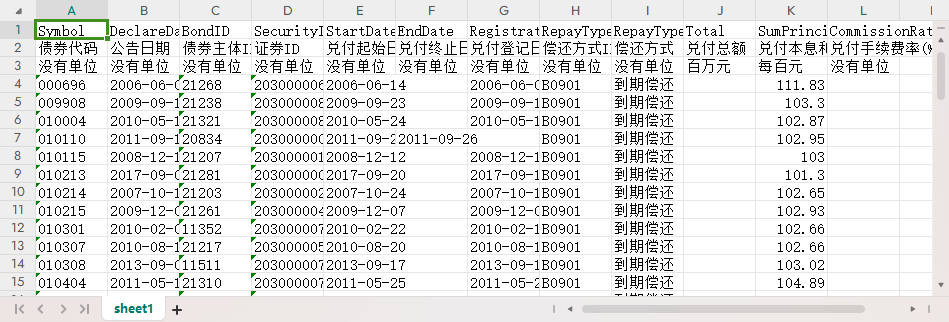 全国债券市场兑付资料2000-202409兑付起始终止登记日偿还方式兑付总额兑付本息和兑付手续费率(%)